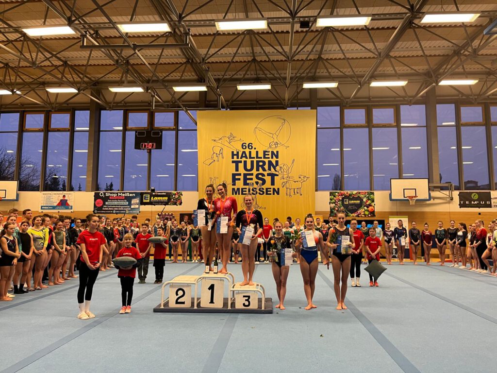 Am 31.1. fand der erste Wettkampf des Jahres in Meißen statt. In der LK3 turnten Nelly, Emma und Maxi im kleinen Pokal. Denise turnte LK2 im großen Pokal. Unter einem stark besetzten Starterfeld konnten sich die drei LK3 Turnerinnen gut beweisen und turnten sich auf die Plätze 36, 43 und 47. Denise zeigte einen fehlerfreien Wettkampf und durfte sich über Platz 3 freuen.